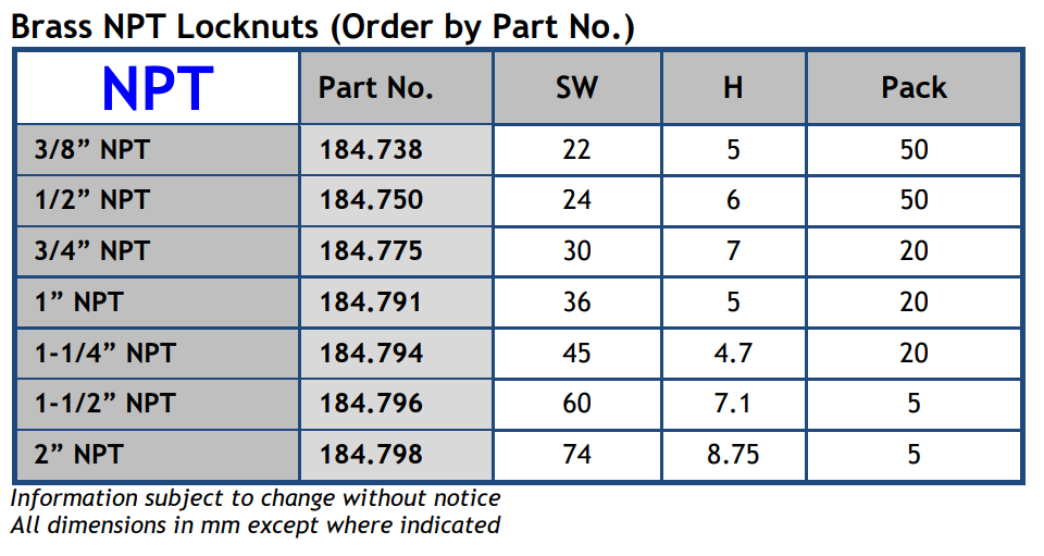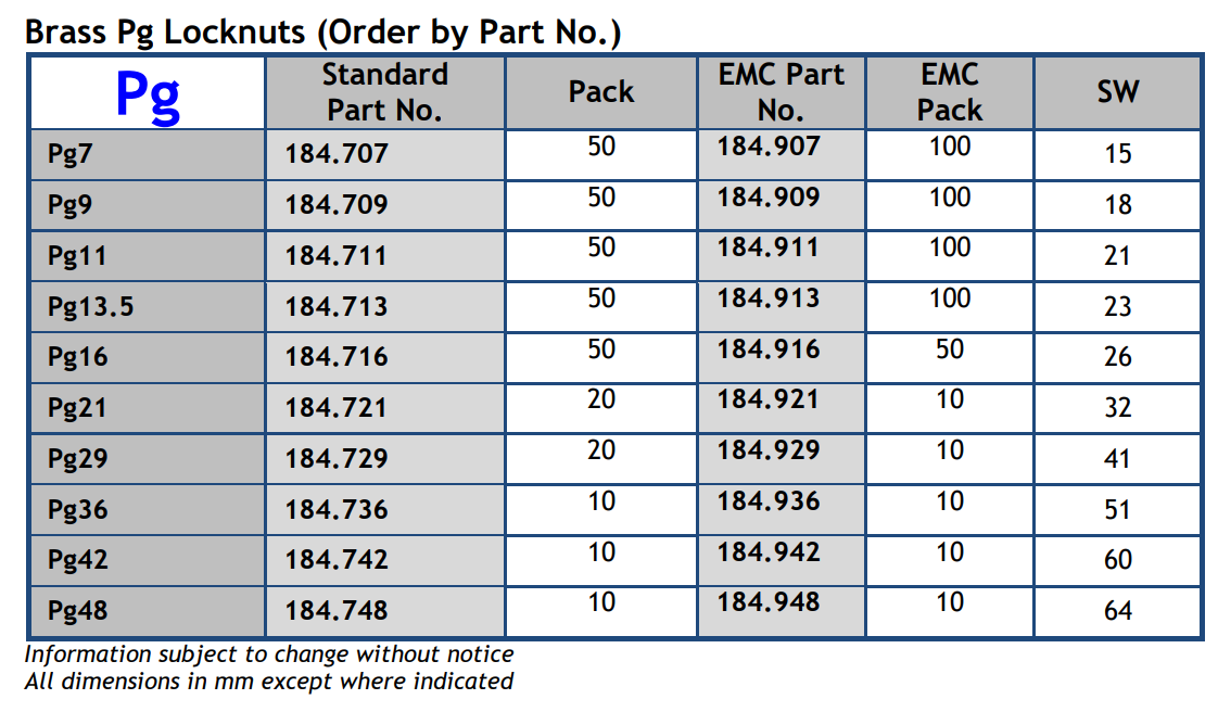 Metric and Pg available in standard and EMC versions; NPT and BSP available in standard versions.