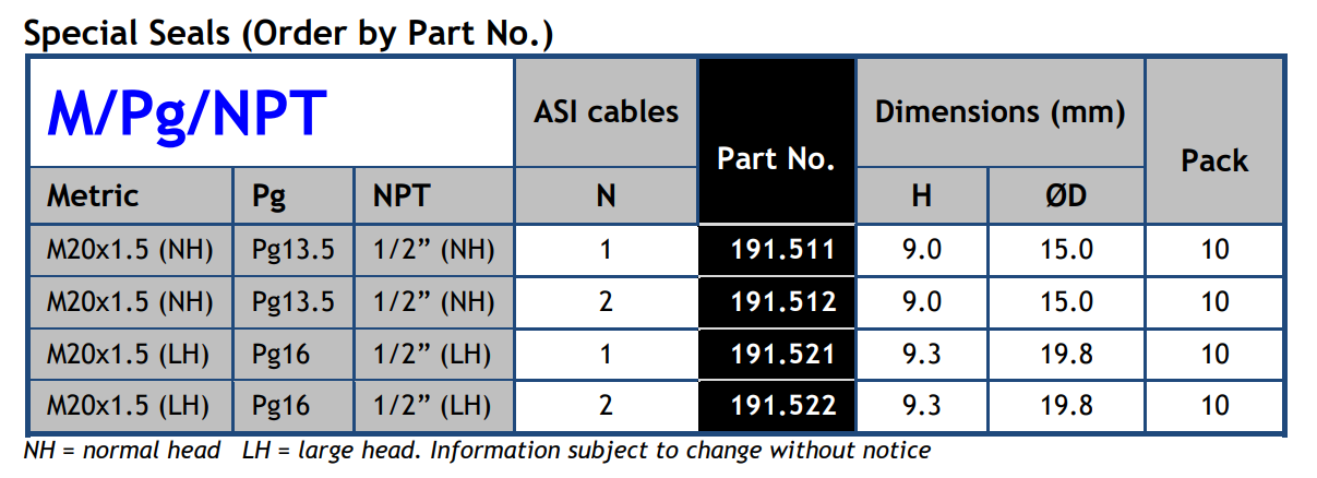 Special Seals for ASI Cables